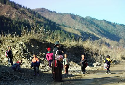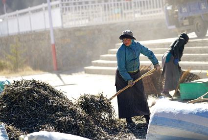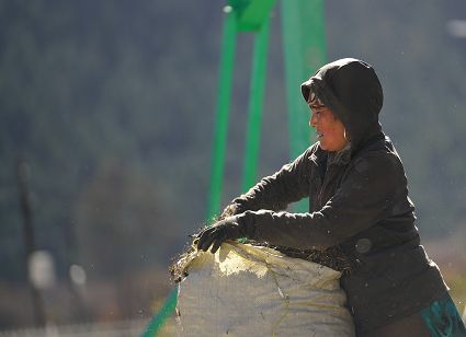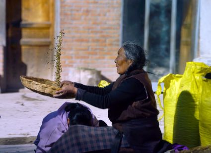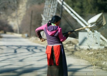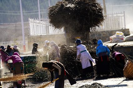 一群孩子會準時來小二樓叫我,要去密林,要去山岡,要去尋找?guī)в薪?jīng)文的瑪尼石,還要去那個神秘的洞頂。比孩子們更準時的是掛在小二樓上的四個大喇叭,鳥雀剛醒來,廣播就開始了,就必須要起來了。穿過巷道,和打豆子的人們一起享受勞動的幸福。我們在一起,等待著下午的廣播,因為廣播會給我們帶來無盡的喜悅。