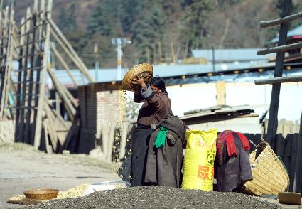 我想,擁有了清新質樸的鄉(xiāng)野日子,就可以靜下心來。而事實上還是無法安下心來,一面想著山林的神秘,一面想著城市的熱鬧。寂寞無聲地穿過巷道,那個向陰的小二樓一如既往地昏暗。拉開麻布的窗簾,大多時候我會看見走在巷道里的老老少少、男男女女,他們背著柴禾,滿帶笑容,相互致意。他們的日子似乎充滿了無盡的樂趣,也充滿了幸福和陽光。上午十點的時候,陽光會滑過窗臺,轉瞬即逝,但陽光的確向小二樓袒露了它的無能為力。另一張桌子擺放著廚具,廚具上每天都會有新的灰塵堆積,盡管如此,它們依然發(fā)出青稞的馥郁之氣。