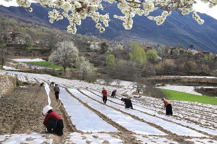 “春耕、夏耘、秋收、冬藏”是大地的“四季歌”。幾場(chǎng)春雨過(guò)后,大渡河流域氣溫逐漸回升。時(shí)下,穿行于我州 大渡河流域廣袤的山川田野間,到處是一派搶農(nóng)時(shí)的忙碌場(chǎng)景。沉寂的田野,開(kāi)始熱鬧起來(lái)。農(nóng)戶(hù)們?yōu)榱艘荒甑暮檬粘?,背上背簍、帶著鋤頭、趕著耕牛,走進(jìn)阡陌縱橫的田野,鉚足“?!眲艃?,翻土、修剪、澆水、除草,田野間好不熱鬧。一幅忙春耕、勤備耕的“春耕圖”已在甘孜大地徐徐展開(kāi)。