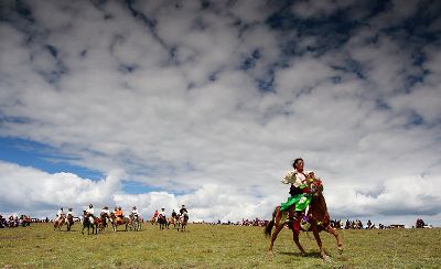 賽馬是藏族人民喜愛的傳統(tǒng)體育項目之一,每到夏天,甘孜大地繁花似錦,各地都會組織耍壩子活動,賽馬便成了耍壩子活動的“主角”。近年來,在黨的民族政策光輝照耀下,甘孜大地發(fā)生了翻天覆地的變化,各族群眾的生活芝麻開花節(jié)節(jié)高。時值夏天,又到了高原一年中最美的季節(jié),當(dāng)?shù)厝罕娨再愸R的方式,展示脫貧后的喜悅,展望美好的生活前景。這組照片是在康定市新都橋鎮(zhèn)捕捉到的。