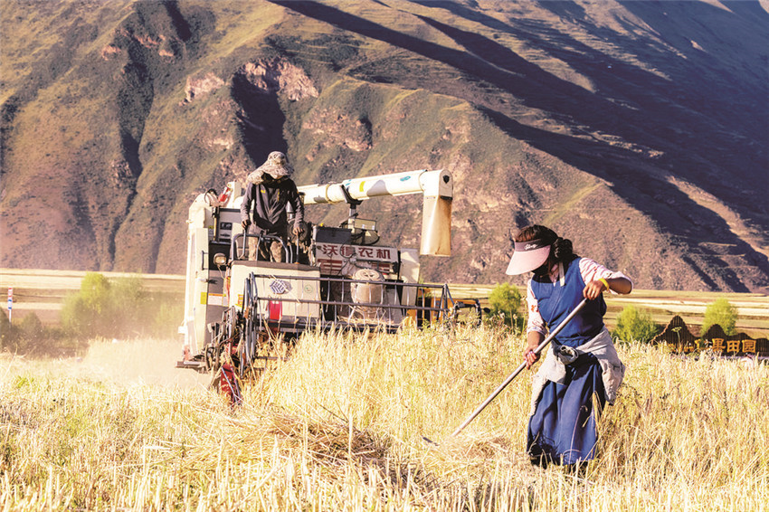 甘孜縣是我州的農(nóng)業(yè)大縣,也是全國(guó)青稞商品糧基地之一,素有“康北糧倉(cāng)”的美譽(yù)。日前,在甘孜縣仁果鄉(xiāng)青稞收割現(xiàn)場(chǎng),一望無垠的田地里麥浪滾滾、麥香四溢,一臺(tái)臺(tái)聯(lián)合收割機(jī)在金色的青稞地里來回馳騁,時(shí)不時(shí)停下來“吐出”金燦燦的青稞,農(nóng)戶們的臉上露出豐收的喜悅笑容。