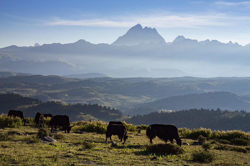 然后行走在山水之間,擁抱大自然,尋找屬于自己的“詩和遠方”。油綠的青稞、小麥,散發(fā)出濃郁的田園風(fēng)味;天邊群山起伏,磅礴的氣勢瞬間感覺人在自然面前實在太渺??;帳篷點綴著開滿野花的牧場,牦牛哞鳴,一片生機,細細體會牧民“逐水草而居”的生存智慧......