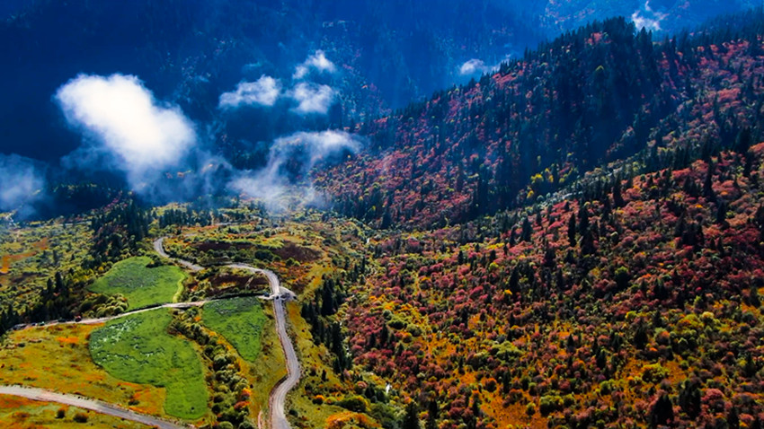 在亞拉雪山景區(qū)白云、雪山、溪流、湖泊、彩林和蜿蜒的林間小道,籌備著接受時(shí)光的檢閱;在國(guó)道G350沿線,高大的行道樹矗立兩旁,陽(yáng)光透過黃葉斑駁散落,這是白楊對(duì)大地一年一度的禮贊;在鮮水河大峽谷國(guó)家森林公園,山河披上金色華服,紅楓將最后的力量綻放成花朵贊美鮮水的波瀾、時(shí)代的壯闊;在玉科千畝連片彩林,金色畫卷鋪展大地,肆意蔓延;在甲依拉措,循著落葉松金黃的誘惑它將絕美寶石珍藏于雪山下,等待你驚喜的表情;在道塢濕地公園,黃葉倒影在綠水中白鷺、野鴨,愜意人群、互為生趣,自然贈(zèng)予的歡愉最是秋季。