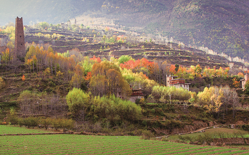 四季更迭,中路藏寨的魅力各異。秋天,正是藏寨最為絢爛的季節(jié)。造型獨(dú)特、別致的藏式民居,蜿蜒曲折的林間小道,組成了一幅美不勝收的畫(huà)卷。藏寨依山勢(shì)迤邐連綿,分布在相對(duì)高差近千米的山坡上,藏式樓房灑落在五彩斑斕的彩林中,與山谷、溪流、雪峰交相輝映,極富層次,構(gòu)成了一幅恬靜如詩(shī)的優(yōu)美畫(huà)卷。