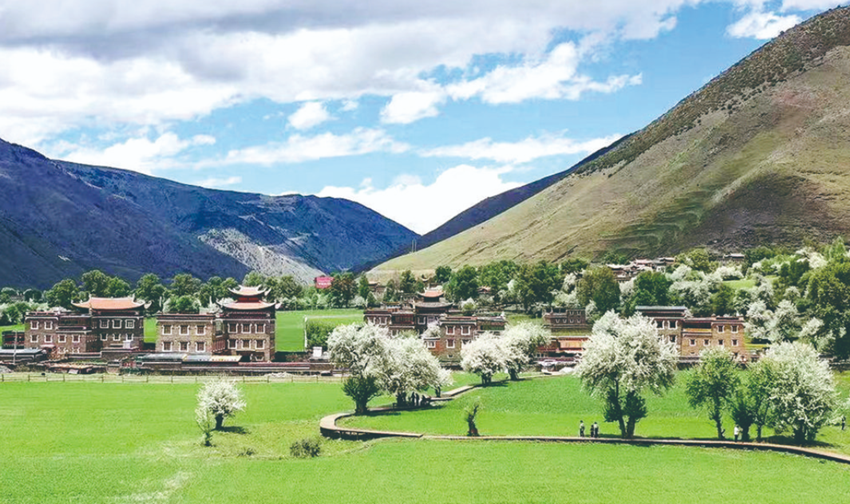 每年5月下旬,貢嘎海棠盛放的甲根壩就瞬間變身為秀美的世外莊園,木雅藏房錯(cuò)落有致,青稞麥田綠意蔥蘢,潔白的花朵成簇成團(tuán),溫暖漫山遍野,微風(fēng)輕拂,花落成雪,飄滿(mǎn)碧空如洗的天空,花兒灑在田間、落在地頭,在藍(lán)色的天空、棕色土壤和青綠色樹(shù)葉映襯下,顯得清新至極。