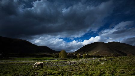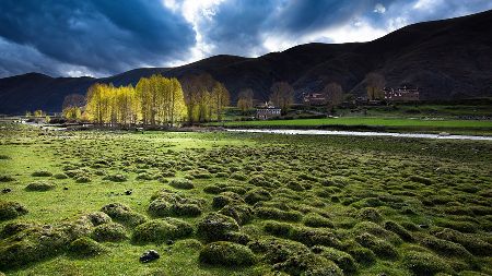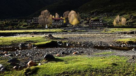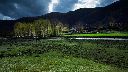 湛藍的天空下,雄鷹在盤旋,牛羊在安詳?shù)芈匠圆荩o靜的小河在山邊蜿蜒流淌,充滿綠意的白楊樹在風中搖曳,藏式民居不時升起縷縷炊煙,寂靜、空曠的原野深處偶爾會傳來幾聲狗叫高原的陽光又賦予這幅風景畫凝重的色彩這樣的畫面叫人心醉,讓人留戀忘返從折多山腳下至新都橋鎮(zhèn),再至塔公草原,處處都是入畫的美景,不愧稱為“攝影家的天堂”。