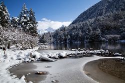 進(jìn)入木格措的冬天就是進(jìn)入了一片美麗的冰雪天地,然而在這里,除了冰雪,還有陽(yáng)光、沙灘、藍(lán)天處處充滿著浪漫的氣息。早晨,當(dāng)你站在海拔3780米的木格措海子觀景臺(tái)前,閉上眼睛細(xì)細(xì)品味雪山后暖暖陽(yáng)光照射在身上的感覺(jué);工作、生活、煩惱……一切拋在腦后!在景區(qū)的樹(shù)上到處是漂亮的冰掛,讓人仿佛一下子進(jìn)入純潔晶瑩的人間仙境;在海子旁自然形成的一大片名為黃金海岸的沙灘,更是給來(lái)到這里的人們帶來(lái)情海的感受。