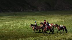 8月的扎溪卡草原水草豐美、牛羊遍地、到處是一片花的海洋,兩萬多平方公里的廣袤大地如同一座敞開的大花園。汽車行駛在草原上,就像一只小船在無邊無際的大海上航行,有時(shí)候覺得已走到了天邊,可是登高一望,還是芳草碧連天,地平線依然很遙遠(yuǎn),好像永遠(yuǎn)沒有盡頭。在這離藍(lán)天很近離塵世很遠(yuǎn)的廣闊空間里,仿佛在夢游仙境,周圍的山川景物都帶有夢幻般的色彩,對(duì)自身的存在也產(chǎn)生一種不真實(shí)的虛幻感。在這里,你似乎已變成了一個(gè)自由自在的牧人,只不過你放牧的不是牛羊,而是生命和靈魂。 扎溪卡草原的夏天到處呈現(xiàn)出一派生機(jī)勃勃的盎然景象,所有的生命之花都在這個(gè)季節(jié)盡情地綻放、茁壯地成長。在這個(gè)被稱為動(dòng)物天堂的地方,你仿佛走進(jìn)了一個(gè)天然野生動(dòng)物園,所到之處,不時(shí)有“羽族炫翎,蹄類競走”的情形出現(xiàn)在身旁。你會(huì)驚喜地看到一對(duì)對(duì)黑頸鶴在水邊起舞,一群群白唇鹿在山間奔跑,敏捷的巖羊在峭壁上跳躍,矯健的金雕在藍(lán)天上翱翔……