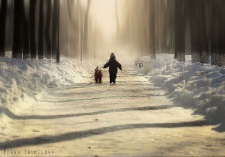 兩個毫不知情的小男孩兒無疑為這種電影畫面般精美的風景上添上了最美的一筆。無論是在一條泥濘的小路,還是陰冷的森林,或是在室內。Elena捕捉到了那束最完美的光線,正巧照射在小男孩兒的身上,如陰雨天突 然出現的太陽,一切都變得不再陰郁而充滿陽光。Elena說,“我比較喜歡自然光,無論是在室內還是室外,我喜歡各種各樣的光線環(huán)境,街燈,蠟燭,煙霧, 雨天,雪天,任何一種都能給予畫面更深度的視覺沖擊與意義。