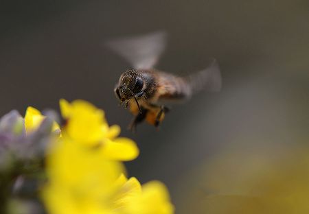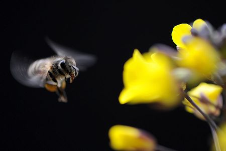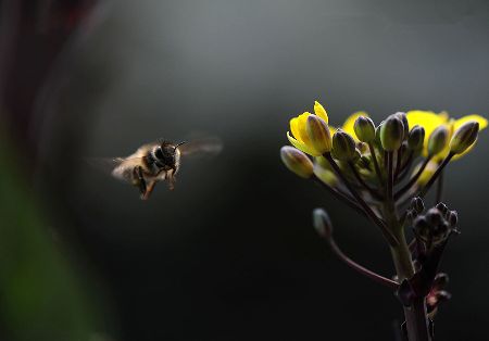 千百年來(lái),許多小宗蔬菜的傳宗接代依靠中華蜜蜂授粉。紫油菜花在初春開(kāi)放,這個(gè)季節(jié)西方蜜蜂因畏寒仍在巢中被人工飼養(yǎng),只有中華蜜蜂不怕寒冷,不嫌花源稀少,只要?dú)鉁剡_(dá)到8℃,它們就出勤了。 熊小立圖文 攝于成都
