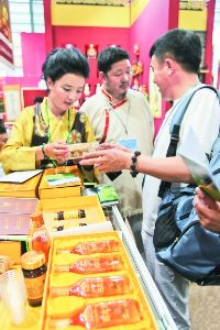 記者在首個公眾開放日當(dāng)天的甘孜展館看到,我州8個名優(yōu)特色產(chǎn)品的展位前,人流如潮?;蛸徺I,或品嘗,或填單訂貨,構(gòu)成了激動人心的一幕。和絕大多數(shù)觀眾一樣,一走進(jìn)甘孜展館,美國游客尼爾就對這些名優(yōu)產(chǎn)品贊不絕口,吸引他的不僅有甘孜水淘糌粑、爐霍雪域俄色茶,還有高原名貴藥材制品、高原牦牛肉制品等。