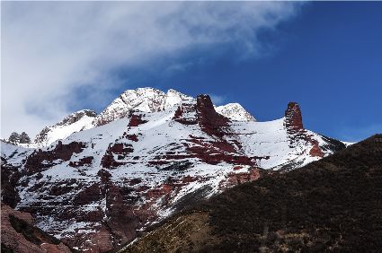 或許,新龍丹霞就是在守望這片秘境。綿延三十多公里的紅色,以新龍縣銀多鄉(xiāng)阿色一村為中心,凝固千姿百態(tài),隆起峻拔偉岸??瓶嫉目匆娏说は嫉孛簿坝^要素、發(fā)育程度、組合方式,轉(zhuǎn)神山的信眾看見了觀音、金剛、佛塔、海螺,旅游的看見了神奇、壯觀和文化……