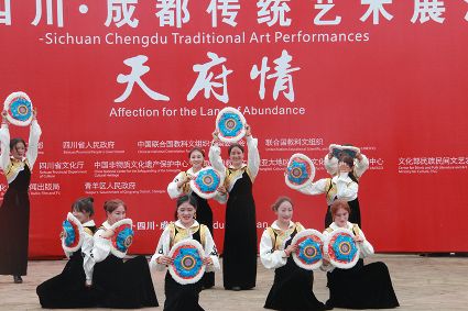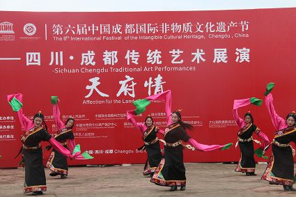 到處都是炫麗的色彩,到處都有神秘的傳承,6月10日,第六屆成都國際非遺節(jié)在成都拉開帷幕。當(dāng)天下午2時(shí),一場我州特有的文化大戲在成都非遺博覽園西城事廣場上演。我州石渠真達(dá)鍋莊隊(duì)在此激情演繹,他們揮舞長袖,翩翩起舞,讓前來游覽的觀眾贊不絕口。