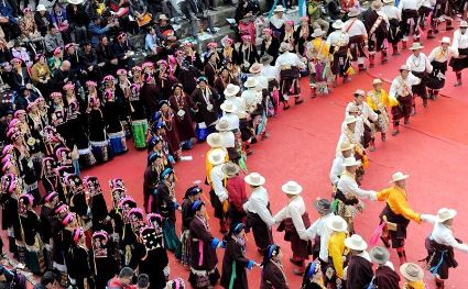 10月26日,2017中國四川丹巴嘉絨藏族鄉(xiāng)村風情節(jié)在巴底鎮(zhèn)開幕。本次風情節(jié)集古碉藏寨、嘉絨選美、大型鍋莊、民族歌舞、精美服飾、農(nóng)耕體驗以及田園觀光等為一體,既是一場風情別致的民族文化盛會,也是一場如詩如畫的鄉(xiāng)村旅游大餐。30名巴底片區(qū)(聶呷鄉(xiāng)、巴旺鄉(xiāng)、巴底鎮(zhèn))的姑娘們經(jīng)過形體和才藝展示兩個環(huán)節(jié),最后評選出金花1名,銀花2名,石榴花3名。本次活動評選標準總分為10分,29號選手莫莫以9.85分的優(yōu)異成績榮獲本次風情節(jié)“金花”稱號,10號選手卓瑪和6號選手孟江榮獲“銀花”稱號,28號選手扎西瑪初、16號選手仁千以及11號選手德江初榮獲“石榴花”稱號。 丹巴嘉絨藏族風情節(jié)歷史悠久,至少可以追溯到唐宋時期,最早是人們?yōu)榱藨c祝豐收舉行的慶祝活動,每當夏收或秋收之后的農(nóng)閑期間,人們各自帶著釀制的新酒,聚集在一起,一邊品嘗美酒,一邊跳起鍋莊,盡情歡度豐收之后的閑暇時光,祛除一年的疲勞辛苦,久而久之便形成一種習俗沿襲下來,活動的規(guī)模越來越大,內容也越來越豐富?;顒觾热葜饕ǎ浩穱L美酒、鍋莊舞蹈演賽、山歌情歌對唱、評選美女、民間雜耍等活動。據(jù)了解,2017丹巴嘉絨藏族鄉(xiāng)村風情節(jié)將持續(xù)至28日,還將在東谷鄉(xiāng)、革什扎鄉(xiāng)、梭坡鄉(xiāng)開展一系列豐富多彩、獨具特色的民俗表演活動。