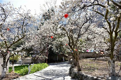 陽春三月,瀘定陽光明媚,到處生機盎然。大渡河畔的杵坭、田壩等地櫻桃花在田間競相綻放,一團團,一簇簇,一朵朵潔白的花兒緊緊簇擁著,綴滿枝頭。一陣陣微風吹來,櫻桃花隨著枝條在風中輕盈地搖曳。