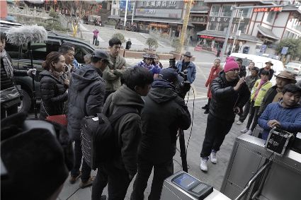 在瀘定縣城,陳軍生帶著陶琳和驢友們,站在熱鬧的紀(jì)念廣場上。劉夏正在給游客們介紹瀘定橋23烈士的雕像。在瀘定橋頭,陶琳帶領(lǐng)著游客們?cè)跇蛏险障?,充滿著歡快的氛圍。經(jīng)過一段時(shí)間的游覽,當(dāng)天的游覽結(jié)束了。劉夏和陶琳一起舉起牌子,叫喊著:“軍生客棧,帶您暢游牛背山、嵐安古鎮(zhèn),以及瀘定橋紅色旅游專線!”的宣傳口號(hào),引來了許多游客。