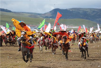 近日,在理塘縣奔戈鄉(xiāng)薩戈村八一賽馬場,來自全縣各鄉(xiāng)鎮(zhèn)近千名牧民進(jìn)行了傳統(tǒng)的馬術(shù)表演,他們以高超的騎術(shù)展演了拾哈達(dá)、馬上射擊、馬上射箭、鐙里藏身、五彩凌空等馬術(shù)技巧,把歡樂帶到草原,讓當(dāng)?shù)啬撩窈捅姸嘤慰拖硎芰艘粓鲆曈X盛宴。