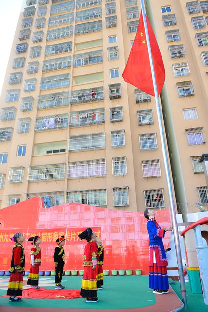 “六一”前夕,我肩挎相機(jī)走進(jìn)了熱鬧非凡的九龍縣二幼,他們正在舉行“我們在一起”文藝活動。活動一開始,幾個(gè)四五歲的小小升旗手,身著民族服裝在老師的口令下莊重地走上旗臺,在激昂的國歌聲中,國旗在他們手中冉冉升起,全場行注目禮。這場景令我感動不已,國家強(qiáng)盛,人民安康,孩子們在溫暖的陽光下茁壯成長。