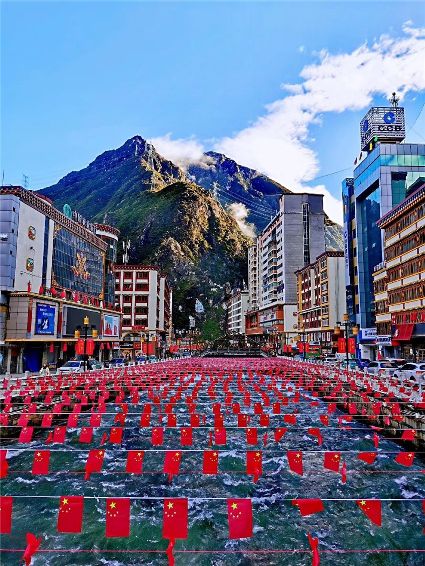 萬方樂奏慶華誕,雪域高原紅爛漫。處處國旗飄揚,到處都能感受到濃烈的喜迎國慶氛圍。此時,最美不過“中國紅”。