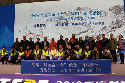 分享會(huì)的座位上,精美禮品袋里裝放著今天的“主角”——新書(shū)《雪線信使——“時(shí)代楷?!逼涿蓝嗉贰7_(kāi)書(shū)本,“他是流浪地球上的康巴漢子”“他是圣潔甘孜的大愛(ài)之人”“他是絨麥峨扎的忠誠(chéng)信使”的句子映入眼簾。