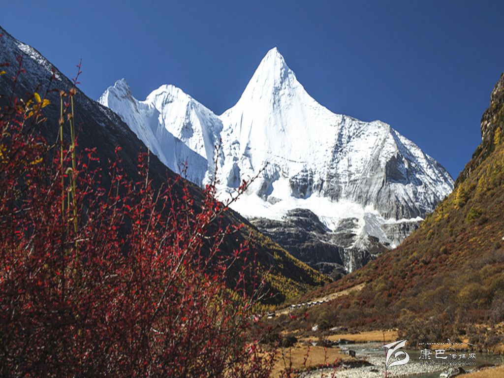 夏諾多吉雪山位于稻城縣與涼山州木里縣的交界處,海拔5958米,是三怙主雪山之一,排行第三。夏諾多吉雪山是“金剛手菩薩”的化身,這是佛教中除暴安良的神祗,它勇猛剛烈,神采奕奕,胯下圍著斑斕的虎皮,腰間纏著大蟒,威武雄壯。夏諾多吉為三怙主雪山的東峰,主峰為三棱錐狀,造型跟金字塔相似。雪山兩翼鋒利似刀,蜿蜒綿亙,在天空中勾勒出的線條尖銳有型。清晨,陽(yáng)光從夏諾多吉的背后升起,從溝谷中看過(guò)去,雪山具有剪影一樣的效果。黃昏是雪山最美的時(shí)候,夕陽(yáng)從西邊斜斜地照在雪峰上,整個(gè)雪峰沐浴在柔和的陽(yáng)光中,裸露的巖石和冰雪體被渲染得極為艷麗。