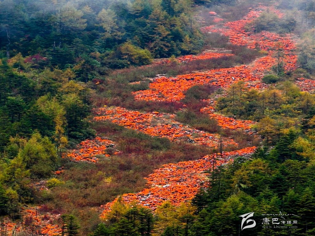 看來要想出現(xiàn)大規(guī)模的紅石灘景觀,除了溫度、濕度、光照等條件外,還需要以下條件:一是要有原生的石頭;二是要有大量的這種石頭;三是給這些石頭一個(gè)巨大的舞臺(tái),讓其亮相。當(dāng)這些條件都具備了,紅石灘就出現(xiàn)了。這種條件怎樣才能夠出現(xiàn)呢?我想到了“泥石流”。