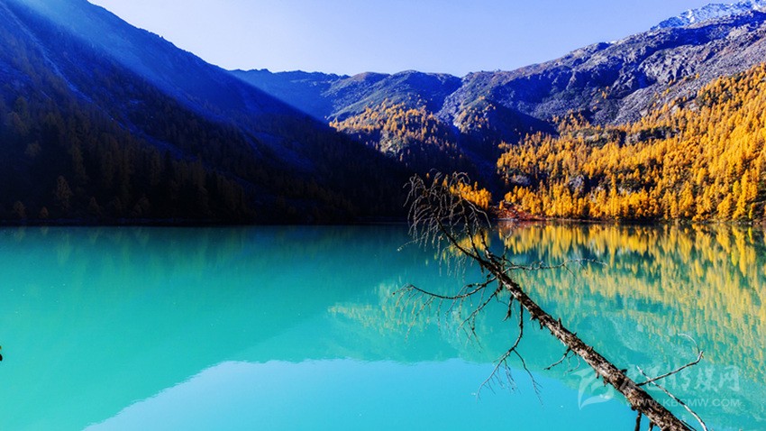 這個時間,藍天、雪山、黃松、碧海,構(gòu)成了一幅難得的天然畫卷。