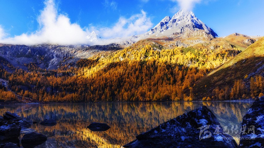 深秋季節(jié),騎馬上山,穿過彩色秋林來到湖邊,但見雪山腳下,層巒疊嶂,落葉松間,一池秋水像一顆純凈的寶石,鑲嵌在嶙峋陡峭的高山峽谷中,偎依在茂密的原始森林旁,湖水倒映著藍天白云和金黃的落葉松,靜謐而神秘,散發(fā)著迷人的光芒。這里沒有絲毫人工打造的痕跡,這里沒有一點人間煙火的味道,這里就是一方充滿誘惑的世外桃源——道孚甲依拉措。