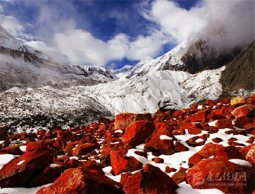 在積雪厚厚的遮掩之下,紅石灘永遠(yuǎn)是震撼人心的風(fēng)景。在綿延數(shù)十公里的河谷中,在茫茫的積雪下,紅石絲毫不甘寂寞,處處顯露出它們火一般的色彩來,在藍(lán)天的映襯下更加鮮艷奪目,這般壯美的景象讓毛能之恍如走進(jìn)另一個星球。