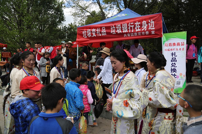 曬佛儀式之后是第三屆“梵音”音樂會。音樂會在由州歌舞團演繹的面具舞《祈??刀ā分欣_序幕,13個表演節(jié)目中,既有透人心靈的梵音演唱和二胡演奏,又有激蕩人心的說唱表演和流行演唱,還有質(zhì)樸脫俗的原生態(tài)民歌演唱和群舞鍋莊,時尚和古樸、流行與傳統(tǒng)都在這里得到了集中展現(xiàn)。原生態(tài)歌曲《溜溜調(diào)》,原創(chuàng)歌曲《康定先生》《新編木雅鍋莊》等極具康定特色的節(jié)目更是將情歌故里的人之美、景之美、文化之美展現(xiàn)得淋漓盡致。將近90分鐘的表演高潮迭起、精彩紛呈,現(xiàn)場喝彩聲、歡呼聲此起彼伏,手機、單反、平板、航拍交相輝映,忙著錄視頻、拍照片、發(fā)微博、曬動態(tài)的人更是比比皆是在。除了精彩的表演,現(xiàn)場身著華麗盛裝的康巴美女也是一道靚麗的風(fēng)景,引得無數(shù)中外游客爭相與之合影留戀。從四面八方趕來叫賣、推銷各種商品的店商和攤販也為此次活動增添了不少生氣。此外,康定團市委還特意在活動現(xiàn)場開展了“垃圾變禮品”活動,通過贈送禮品鼓勵大家清理垃圾,此次活動雖然人流巨大但場地衛(wèi)生異常良好。