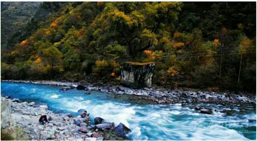 東谷河原名牦牛河,在丹巴縣五個(gè)主干水系中,它是最小的一條,兩岸多為峽谷地貌,僅在支溝匯合處出現(xiàn)有平壩草地。在陡峭高聳的河谷兩岸,針闊葉混交林呈現(xiàn)出深淺不同的綠色,既有青黛,墨綠,又有嫩綠,草青及四季輪番開(kāi)花的不同品種的大小杜鵑。還不時(shí)有珍禽出沒(méi)。每當(dāng)秋高氣爽的季節(jié),一團(tuán)團(tuán),一簇簇的紅葉伴隨杜鵑花在林間綻放,伴以宛轉(zhuǎn)的啾啾鳥(niǎo)嗚;河水清澈明亮,時(shí)而奔騰而下,形成飛瀑,時(shí)而伴著叮咚之聲潺潺而過(guò),這種美景何處能有?老革命家胡耀邦同志游覽后,對(duì)此青山綠水贊不絕口,并稱(chēng)之為“天然盆景”!盆景藝術(shù)一向以“無(wú)聲的詩(shī)詞,立體的畫(huà)卷”來(lái)形容。牦牛谷景點(diǎn)正是一個(gè)有著巨大篇幅的詩(shī)詞,一個(gè)有著廣闊的立體畫(huà)卷。