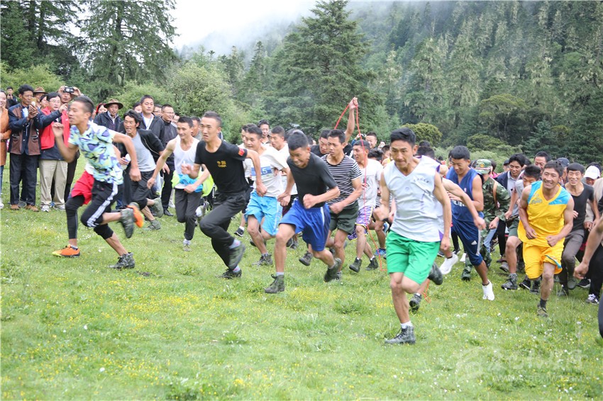徒步穿越邀請(qǐng)賽是九龍縣委、縣政府主辦的2018年群眾文藝匯演暨甘孜州山地旅游節(jié)之圣湖祈福·第三屆伍須海游海節(jié)活動(dòng)的主要內(nèi)容之一。140多名參賽選手和幾百名旅游愛好者一早來到伍須海邊,置身于云霧繚繞的山巒之間,共同見證賽事啟幕。在宣布比賽規(guī)則后,隨著裁判一聲哨響,參賽選手從郁郁蔥蔥、芳華吐露的伍須海岸的上草壩奔向山峰,經(jīng)過伍須海、海臺(tái)景點(diǎn),最終到達(dá)風(fēng)景名勝日魯庫。在11公里的山路中,參賽選手將爬越4200多米的高峰,穿越古老蔥郁的原始森林,感受高山杜鵑和高原野花的麗姿,與窸窣的鳥鳴為伴,在競賽的同時(shí),樂享藏彝走廊的無盡魅力。