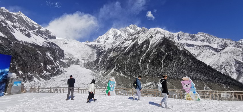 “前天從網(wǎng)上看到海螺溝景區(qū)即將開放的信息,別提多帶勁兒了。這次疫情發(fā)生就一直在家呆著,悶太久了,就想著疫情可控可防的時(shí)候,一定要來川西走走,剛好海螺溝離成都車程近,網(wǎng)絡(luò)風(fēng)評(píng)也是有口皆碑的。”遠(yuǎn)道而來的寧波游客吳先生目之所及盡是玉樹瓊枝、銀裝素裹的雪原冰川風(fēng)光,激動(dòng)不已地說:“透透氣、玩玩雪、泡泡湯,回歸自然的感覺真太好了!”