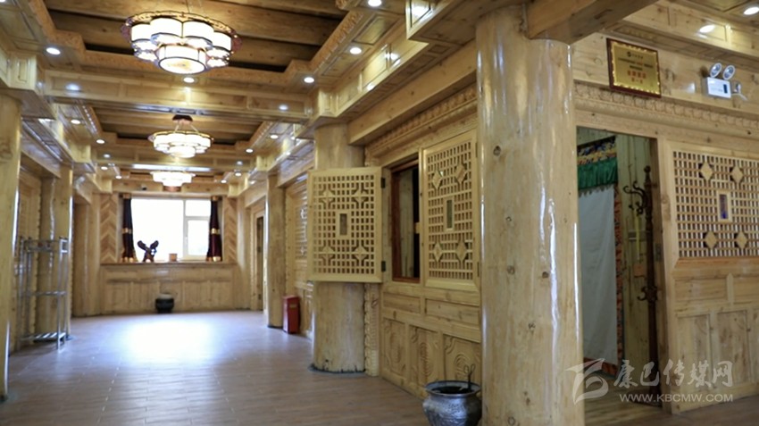 這幢民“居”之所以是“宿”,是因?yàn)樗牡讓颖辉O(shè)計(jì)建造成為了11間客房,安裝現(xiàn)代化設(shè)施后用于旅游接待。而二樓則為臥室、經(jīng)堂、客廳、貯藏室、廚房、走廊和陽臺等,在建造中最難的一道工序便是室內(nèi)裝修的雕刻和繪畫,此二門藝術(shù)可謂“崩科”之精華所在,極具康巴文化特色。
