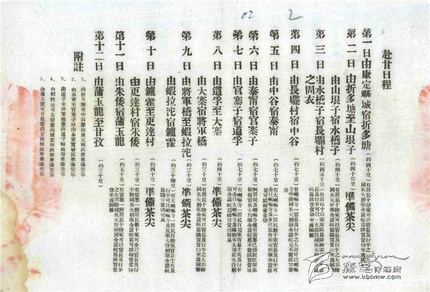為了安排好戴院長一行的行程,西康建省委員會專門發(fā)出了一份“訓(xùn)令”。這份時間表就是根據(jù)“訓(xùn)令”要求為戴院長行程作出的安排。每天從何地到達(dá)何地,里程多少,休息地有無村莊、寺廟,接待力量如何、是進(jìn)房屋休息還是支帳篷都有說明,而且對沿途各縣各地提出了包括應(yīng)準(zhǔn)備柴草、應(yīng)在哪些地方準(zhǔn)備“打尖茶”(午飯)等具體要求。