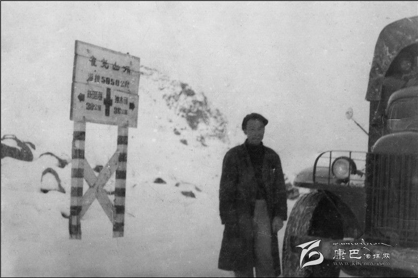 胡文欽1954年車過雀兒山埡口 。