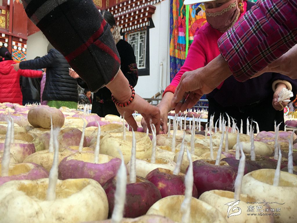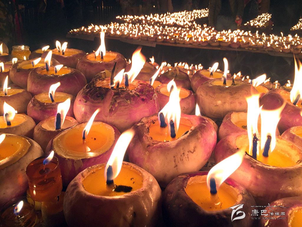我州最具特色的燃燈節(jié)當(dāng)屬康定市城內(nèi)安覺寺舉辦的燈會。每到這一天,康定市民會將本地盛產(chǎn)的“芫根”洗干凈,然后掏空中間的瓤,在里面放置燈芯,做成酥油燈盞,入夜以后,數(shù)萬盞酥油燈一起點燃。因此又稱“芫根燈會”。12月6日晚,康定市民結(jié)伴相約前來安覺寺祈福,盛況空前。 (本網(wǎng)記者 馬建華/文 深圳商報記者 薛云麾/圖)