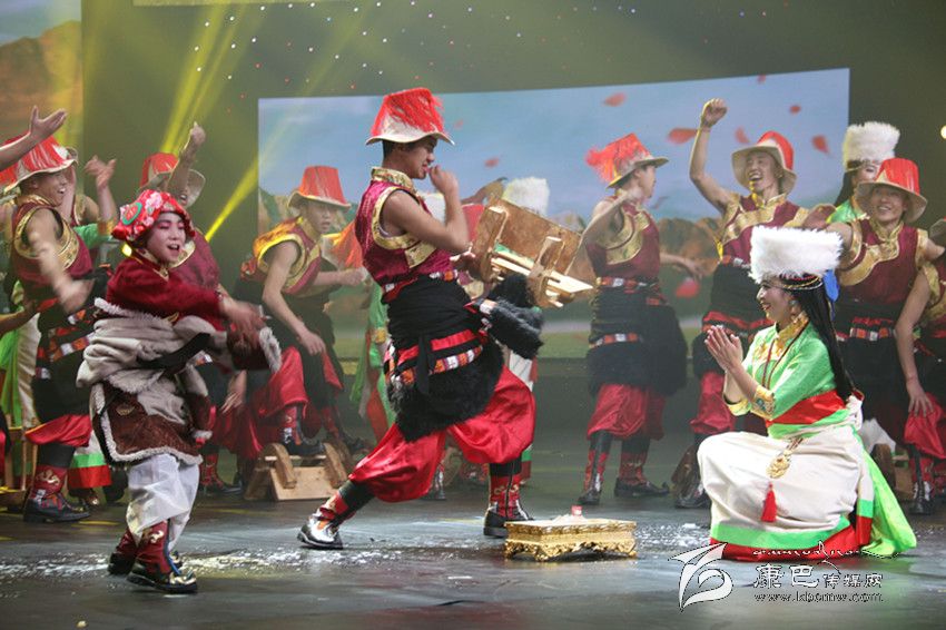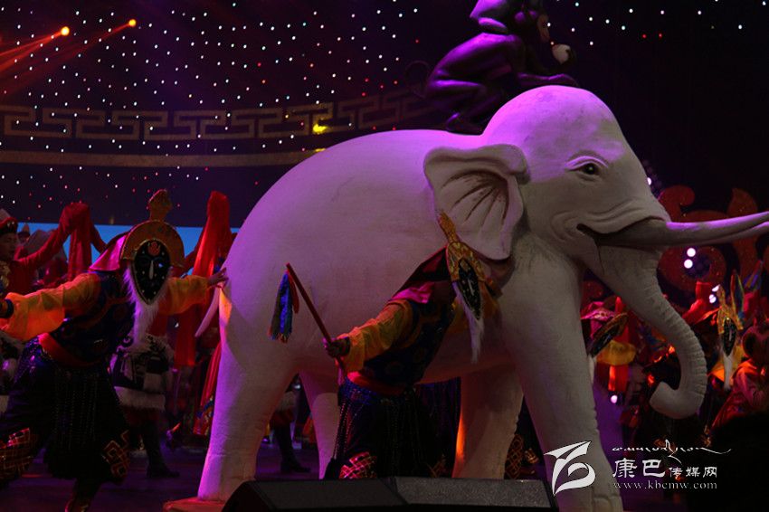 此次藏歷新年春晚被命名為“圣潔家園”,為了應(yīng)“家園”這個(gè)景,導(dǎo)演組頗有“心機(jī)”的將藏元素“和睦四瑞”搬上了舞臺(tái),在開場(chǎng)舞中,兩個(gè)用石膏打造的、栩栩如生的“和睦四瑞”被演員緩緩?fù)粕衔枧_(tái),贏得觀眾陣陣歡呼。在民間傳說(shuō)中大象、猴子、白兔、貢布鳥共同發(fā)愿行持善法,貢布鳥鼓勵(lì)同伴們開始持守五戒,并一直堅(jiān)持不懈動(dòng)員其它眾生嚴(yán)守五戒。在它們帶動(dòng)、勸說(shuō)下,動(dòng)物們都能漸漸做到互不損害、如理如法在木森林中和平度日,以其厲行善法之因,天人也降下和合雨水。后來(lái),整個(gè)大地之上,莊稼豐熟、植物茂密、鮮妍之花滿目盛開,整個(gè)國(guó)家喜獲豐收、財(cái)富圓滿。晚會(huì)也是想利用“和睦四瑞”寓意人民生活團(tuán)結(jié)和睦、和平寧?kù)o的美好愿望。