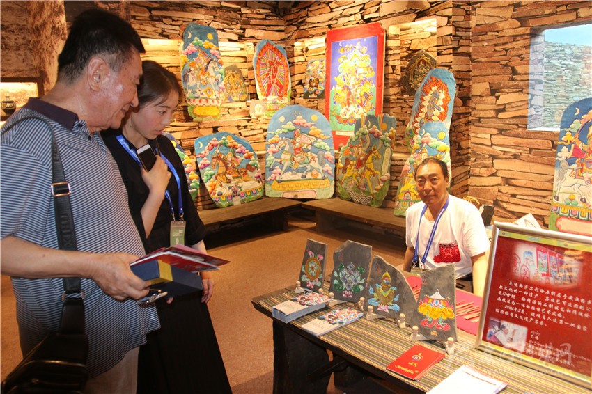 藏羌彝文化產(chǎn)業(yè)走廊展區(qū)展出的唐卡。