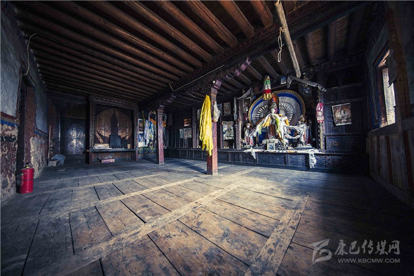 整個(gè)自麥經(jīng)堂內(nèi)除了佛像外,所有的家具都已經(jīng)被搬走,但從墻上的壁畫(huà)和佛像上,依然還能看出當(dāng)年自麥家族的輝煌。