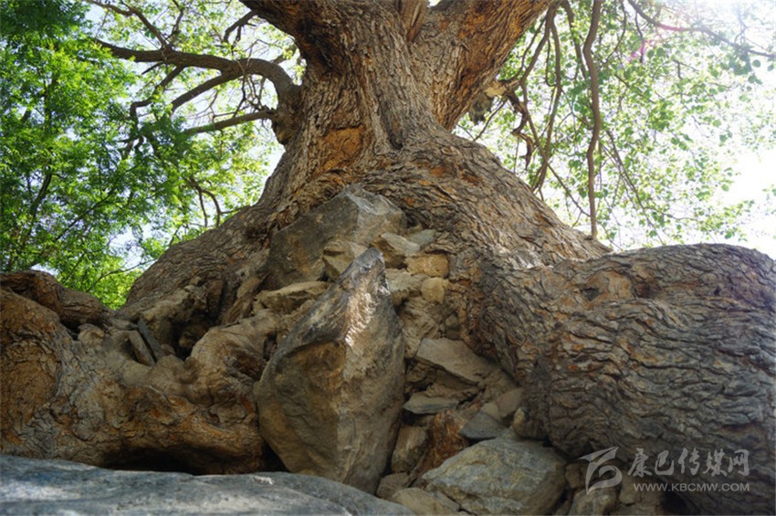 站在藏寨中間,遠(yuǎn)遠(yuǎn)就可以看見那棵枝繁葉茂的桑樹拔地而起,覆蓋住了幾百平米的大地,近了近了,眼前的樹和石頭清晰的出現(xiàn)在面前,在一塊高約三米的巨石上,長著一株高達(dá)10余米的桑樹,樹冠掩映著200多平米的地面。在這棵樹下,能真切的感受到“廳前多古樹,有拏云攫石之勢”之意境。桑樹的主根深入石縫之中,而幾支碗口粗的側(cè)根則在石面上攀爬,將整塊石頭嚴(yán)嚴(yán)實(shí)實(shí)地包裹起來,有的側(cè)根直接伸進(jìn)石塊底部的土地里,而有的側(cè)根則鉆進(jìn)狹小的石縫中,由于受到石片的擠壓,原本粗壯的樹根呈現(xiàn)扁平狀,一旦脫離了石縫的夾裹,樹根變得遒勁有力,猶如蛟龍出水。這些樹根在巨石上盤根交錯(cuò),組成一個(gè)整體,就像是一個(gè)巨人,盤膝而坐。往上,桑樹枝干與樹根一樣旺盛,黑色的樹皮布滿了裂紋,仿佛是歲月的皺紋。樹干之間有幾個(gè)大小不一的樹洞,里面裝填著白色的石塊,據(jù)說,這是信徒們將自己的心愿附注在白石上,希望借助神樹之力送達(dá)天庭。再往上,可以看見在枝干上的分叉處,猛地一下涌出許許多多多鮮活的枝葉,透露出綠綠的光芒。越往上,枝椏越密,厚厚的枝葉便疊加在一起,組成綠葉搭建的棚頂。在這高大茂盛的桑樹里,雖然沒有桑椹可食,然而因?yàn)橛芯G葉樹叢的庇護(hù),這里儼然成了鳥雀的天堂,各色鳥雀便棲息在樹枝間,發(fā)出愉悅的歌聲,張開靚麗的羽翅,在樹叢里你追我趕,上下飛舞,對不速之客仿佛并不在意,有時(shí)候落下來,在地面上啄食祭祀時(shí)所灑落的青稞、麥粒等糧食,接著又撲閃著翅膀飛向樹巔。