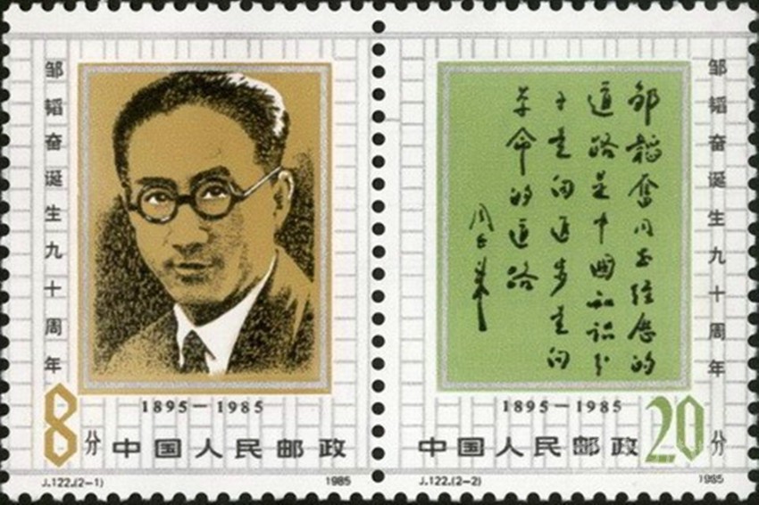 記者是一個(gè)承載著光榮與夢(mèng)想的職業(yè),又是充滿挑戰(zhàn)、需要激情、不怕艱辛、固守責(zé)任的行業(yè)。在我國(guó)發(fā)行的人物類郵票中,一些堪稱中國(guó)紅色記者的人物曾多次出現(xiàn)在方寸之中,其中,最具代表性的是1985年11月5日,原郵電部發(fā)行的J122《鄒韜奮誕生90周年》紀(jì)念郵票。該套郵票共2枚,第一枚為鄒韜奮畫像,第二枚是周恩來的題詞。兩枚郵票采用橫連票設(shè)計(jì),背景為文稿稿紙,主題鮮明,寓意深刻。