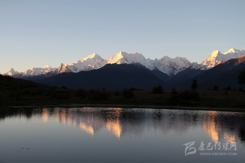 我和張柯在村子里轉(zhuǎn)悠了十多分鐘,也沒有見到一個人。我們只好到田野里瞎轉(zhuǎn)。斜達(dá)村的海拔有3305米,在這里可以俯瞰下面山谷對面的江坡村。因為海拔高,種的都是旱地,地里的青稞才有一尺高。我們從田埂上走過去,一只碩大的母雞帶著10多只小雞唧唧咕咕的在田地里覓食。我們走到村邊山頭上,放眼望去,對面的卡瓦格博群山放射著萬道金燦燦的霞光,盡顯山之王者的威儀。下面的山谷里,蘭色的炊煙如帳幔般飄拂,好一副山野美景!