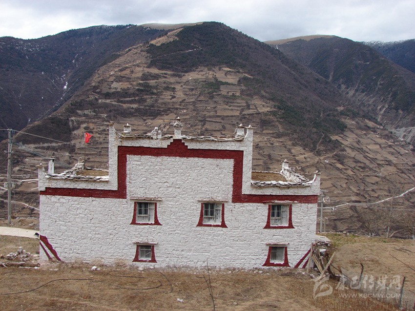 宅龍,是一座隱藏于小金谷中的小村寨。它四面環(huán)山,風(fēng)景絢麗。從一座名為“班咂呷”的山峰始,一條筆直的小徑將整個(gè)村寨分成了上下兩部分。小徑以上的村寨稱為“適度”意為“上宅龍寨子”,小徑以下的村寨稱為“適諾”,意為“下宅龍寨子”。乾隆年間,在抗擊廓爾喀的戰(zhàn)爭中,由于參戰(zhàn)的宅龍屯嘉絨士兵奮勇殺敵,屢立奇功,為此受到了清政府的嘉獎(jiǎng)。帶兵的兩位頭人也因此被委以“守備”“千總”一職。守備和千總分而管理上下宅龍兩個(gè)寨子。