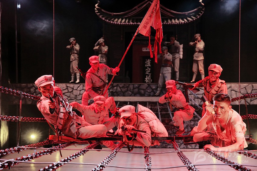 今年5月29日,《飛奪瀘定橋》實(shí)景劇正式在瀘定公演。劇目在充分尊重歷史的前提下,通過“夜襲安順場”“強(qiáng)渡大渡河”“神兵天降”“疾行240”“飛奪瀘定橋”5個篇章,融合戲劇、電影、舞蹈、全息投影和機(jī)械舞美等當(dāng)代藝術(shù)于一爐,將紅軍戰(zhàn)士在危難時刻的奮勇戰(zhàn)斗展現(xiàn)得淋漓盡致。
