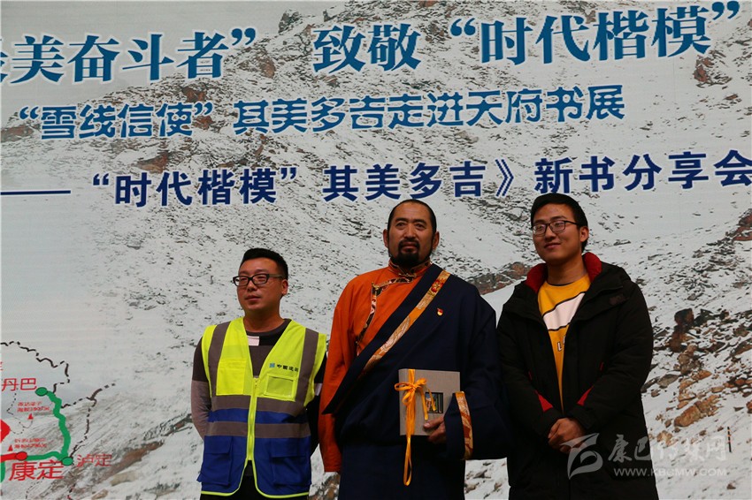 分享會的座位上,精美禮品袋里裝放著今天的“主角”——新書《雪線信使——“時代楷模”其美多吉》。翻開書本,“他是流浪地球上的康巴漢子”“他是圣潔甘孜的大愛之人”“他是絨麥峨扎的忠誠信使”的句子映入眼簾。