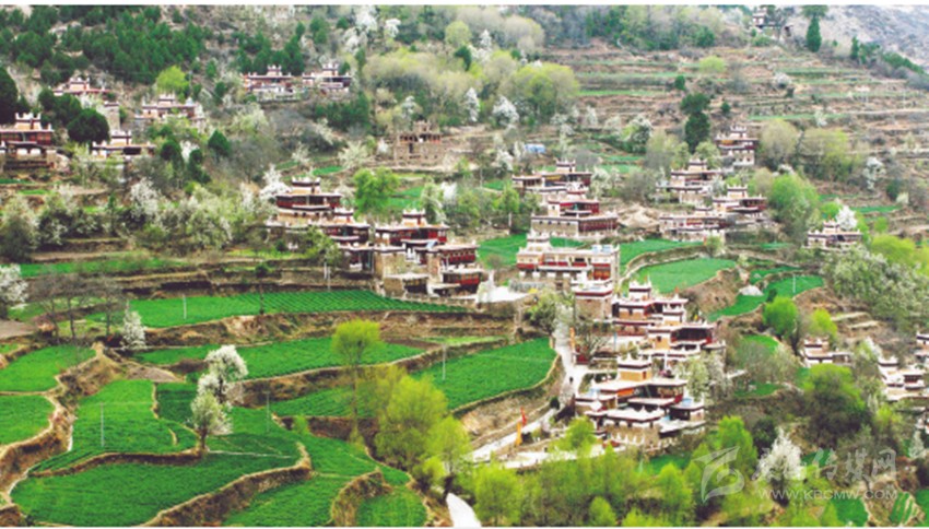 甲居,藏語是“百戶人家”的意思。實(shí)際上甲居藏寨分為一村、二村、三村共150余戶人家,700多人口,甲居藏寨所在地形如一個(gè)面積為5平方公里的大盆,大盆斜倚卡帕瑪群山,一棟棟外形別致、色彩鮮艷的典型嘉絨藏式民居錯(cuò)落有致地從山腳一直排到半山。甲居人一代一代修造的梯田點(diǎn)綴民居之間,顯示出別具一格的田園韻味。茂密的柏樹掩映著民居,這些別致的民居不象故宮規(guī)模對稱,也不象蘇州園林隨興布局。碉樓式的民居雖無嚴(yán)格的統(tǒng)一規(guī)劃,但卻似乎不是隨意而建,每棟民居都有它獨(dú)特?fù)屟鄣娘L(fēng)格。正是這些別具一格的座座碉樓民居,構(gòu)成甲居藏寨的精妙絕倫。民居外所立的經(jīng)幡以及房頂隨風(fēng)飄動的瑪尼旗,又為恬靜如詩的鄉(xiāng)土民居增添了無限神秘的色彩。祥云籠罩山頂,溪水潺潺環(huán)流,山腳滾滾河流,山水渾映,天水合一,筆者一行不由驚嘆,甲居藏寨 ,名符其實(shí)的人間仙境,世外桃源!先前道路險(xiǎn)峻留在心底的驚懼早已一掃而光,一行人激動著迫不及待地?fù)渖碛诿啦粍偈盏南删持小?/p>