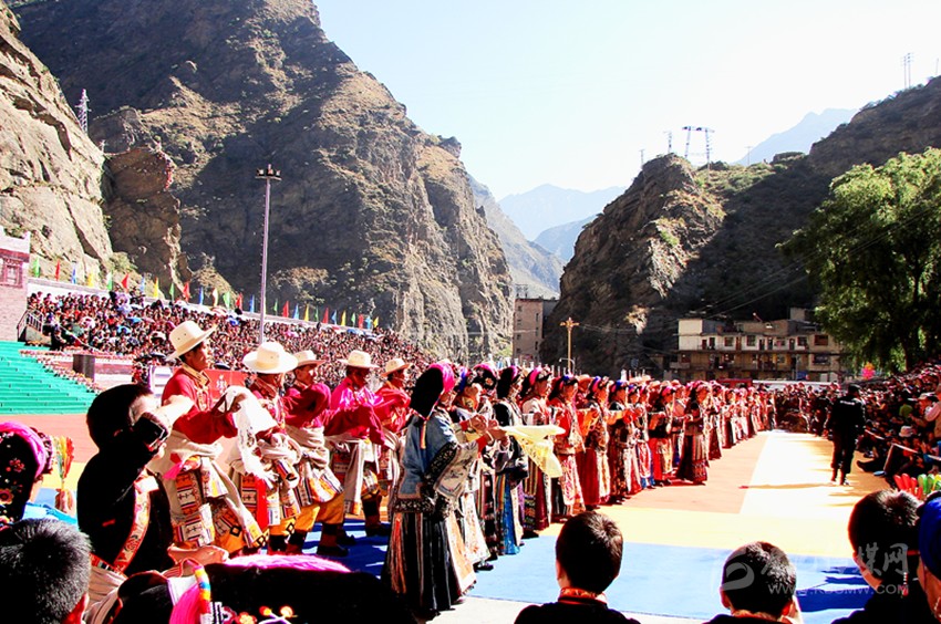 行不多時,一座美麗的村寨就出現(xiàn)在面前。眼前,一幢幢白色的藏房就散落在這如如世外桃源般的山坳里,它就是有著歌舞之鄉(xiāng)美譽的宅龍村寨。山寨中央,一條小徑將整個村寨一分為二,小徑以上的村寨為上宅龍,小徑以下的為下宅龍。因為這里曾是守備千總的衙門駐地,因此,與周邊使用嘉絨藏語的村寨比較,這里的人們習慣使用嘉絨藏語中的敬語交流,其語調(diào)柔和,語速較緩。這里的鍋莊舞獨樹一幟,服飾更是一絕。