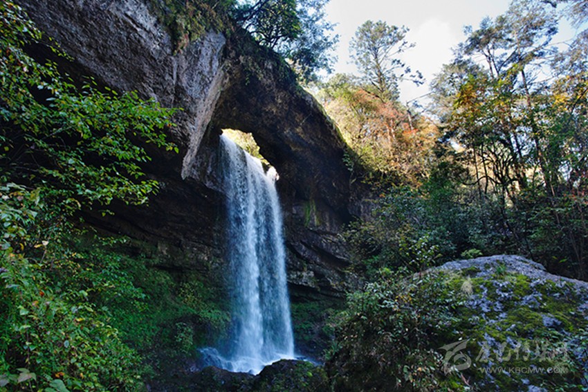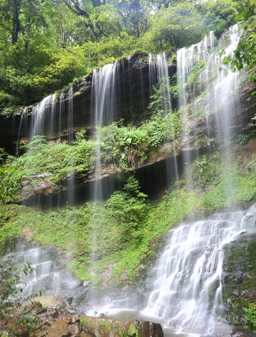 我的腳步?jīng)]有停留,再轉過一個彎道,瀑布就不見了,像我樸素的心歷經(jīng)了一場美妙的幻境一樣忽然。我聽到前方有更大的水聲跌落,仰頭就見一道更高的瀑布從高山峭壁之間,凌空垂下,水花飛濺的聲音響徹山谷。腳下的石徑像有生命似的蜿蜒穿入了瀑布之中,我登上去,站在其間看著瀑布從眼前落下,大口呼吸,心胸豁然開朗,這是瀑布給我的啟迪啊。