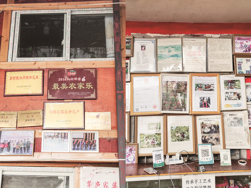 她說(shuō):“一開(kāi)始,我的目的就是想掙錢,想要這個(gè)家庭擺脫貧困。在開(kāi)辦這個(gè)農(nóng)莊之前,我家一直就在借債還債的循環(huán)中苦苦掙扎。天有不測(cè)風(fēng)云,2006年丈夫華建做心臟手術(shù),2007年又做膽息肉手術(shù),花光了四處借來(lái)的四萬(wàn)多塊錢,丈夫出院回家后,不能外出打工,又要急著還人家的錢,在無(wú)計(jì)可施的時(shí)候,我們想到了搞養(yǎng)殖,養(yǎng)魚(yú)魚(yú)死光了,養(yǎng)雞倒是成功了,但是賣不出去,基本虧了個(gè)底朝天。我只好四處打工,但是基本上都處于入不敷出的尷尬境地。”2013年長(zhǎng)子華啟明住院做脾裂手術(shù),2015年公公腦梗,又去州醫(yī)院手術(shù),好像前半輩子就是借錢、還錢,拆東墻補(bǔ)西墻,無(wú)可奈何。正當(dāng)經(jīng)濟(jì)上緊張得不可開(kāi)交,覺(jué)得山窮水盡時(shí),國(guó)家出臺(tái)了鄉(xiāng)村振興戰(zhàn)略,她響應(yīng)國(guó)家號(hào)召,想到了回到家鄉(xiāng)開(kāi)辦農(nóng)家樂(lè)。第一年,在“婦女創(chuàng)業(yè)”貸款8萬(wàn)元、信用社貸款16萬(wàn)元,把農(nóng)家樂(lè)勉強(qiáng)辦起來(lái)了。在幾年的經(jīng)營(yíng)中,“茅廬農(nóng)莊”的口碑越來(lái)越好,在2016年被杵坭鄉(xiāng)授予“2016大眾評(píng)選最美農(nóng)家樂(lè)”,在2018年人氣美食商家網(wǎng)評(píng)選為“瀘定縣網(wǎng)友喜愛(ài)美食商家評(píng)選季軍”,2019年人氣生態(tài)評(píng)選網(wǎng)評(píng)選為“瀘定縣網(wǎng)友喜愛(ài)生態(tài)休閑農(nóng)莊評(píng)選季軍”?,F(xiàn)在,農(nóng)莊的生意越來(lái)越好,規(guī)模越來(lái)越大,家里的日子越來(lái)越好,一家人也過(guò)上了幸福的生活。